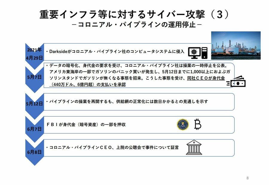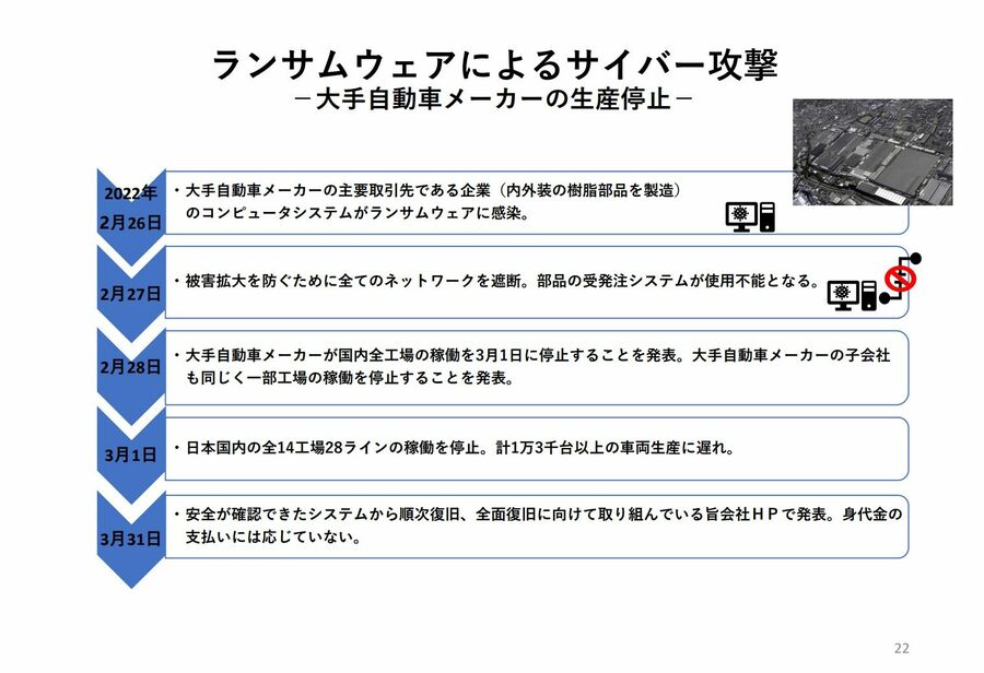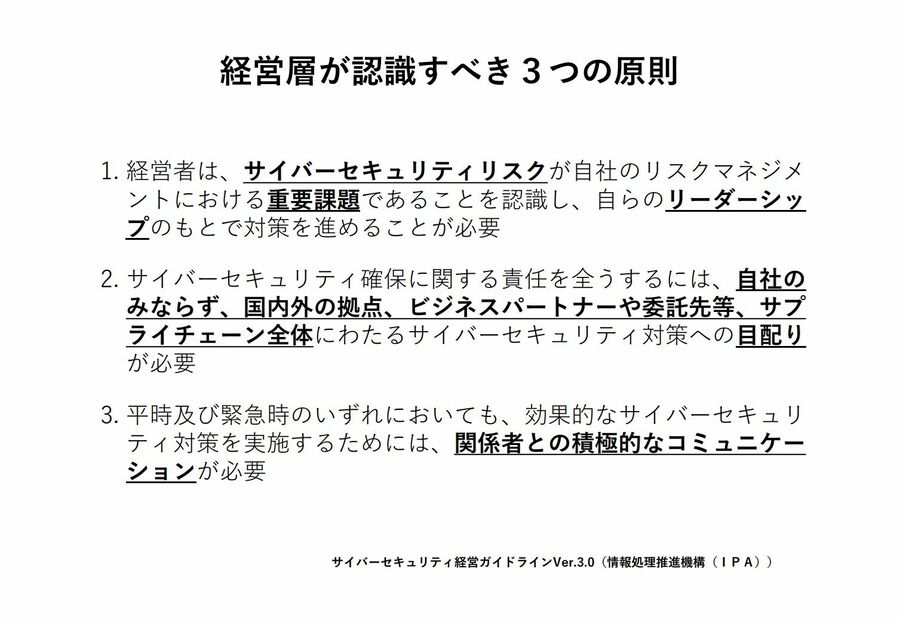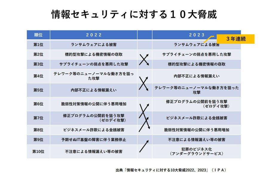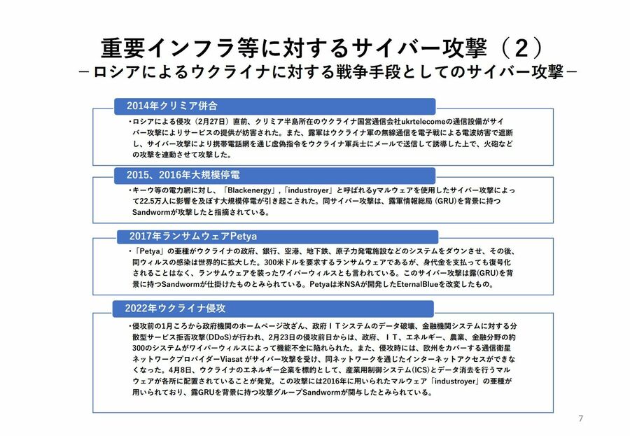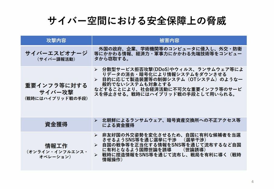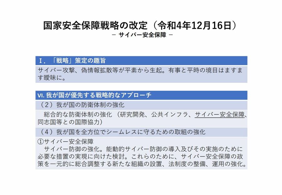 前国家安全保障局長・北村滋氏が警鐘、ランサムウエアの脅威と企業が講じるべき対策とは NicoElNino/Shutterstock.com (画像1/14) 北村 滋/北村エコノミックセキュリティ代表 1956年生まれ。1980年、警察庁⼊庁。警備局外事情報部外事課長、同局外事情報部長など、外事警察・情報関連の役職を歴任。野田政権下で内閣情報官。第2〜4次安倍政権および菅政権下で国家安全保障局長を務め、経済安全保障政策を推進。2021年より現職。 (画像2/14) 出所:北村エコノミックセキュリティ合同会社「サイバーセキュリティと経済安全保障」 拡大画像表示 (画像3/14) 出所:北村エコノミックセキュリティ合同会社「サイバーセキュリティと経済安全保障」 拡大画像表示 (画像4/14) 出所:北村エコノミックセキュリティ合同会社「サイバーセキュリティと経済安全保障」 拡大画像表示 (画像5/14) 出所:北村エコノミックセキュリティ合同会社「サイバーセキュリティと経済安全保障」 拡大画像表示 (画像6/14) 出所:北村エコノミックセキュリティ合同会社「サイバーセキュリティと経済安全保障」 拡大画像表示 (画像7/14) 出所:北村エコノミックセキュリティ合同会社「サイバーセキュリティと経済安全保障」 拡大画像表示 (画像8/14) 出所:北村エコノミックセキュリティ合同会社「サイバーセキュリティと経済安全保障」 拡大画像表示 (画像9/14) 出所:北村エコノミックセキュリティ合同会社「サイバーセキュリティと経済安全保障」 拡大画像表示 (画像10/14) 出所:北村エコノミックセキュリティ合同会社「サイバーセキュリティと経済安全保障」 拡大画像表示 (画像11/14) 出所:北村エコノミックセキュリティ合同会社「サイバーセキュリティと経済安全保障」 拡大画像表示 (画像12/14) 出所:北村エコノミックセキュリティ合同会社「サイバーセキュリティと経済安全保障」 拡大画像表示 (画像13/14) 出所:北村エコノミックセキュリティ合同会社「サイバーセキュリティと経済安全保障」 拡大画像表示 (画像14/14) 前国家安全保障局長・北村滋氏が警鐘、ランサムウエアの脅威と企業が講じるべき対策とは この写真の記事を読む