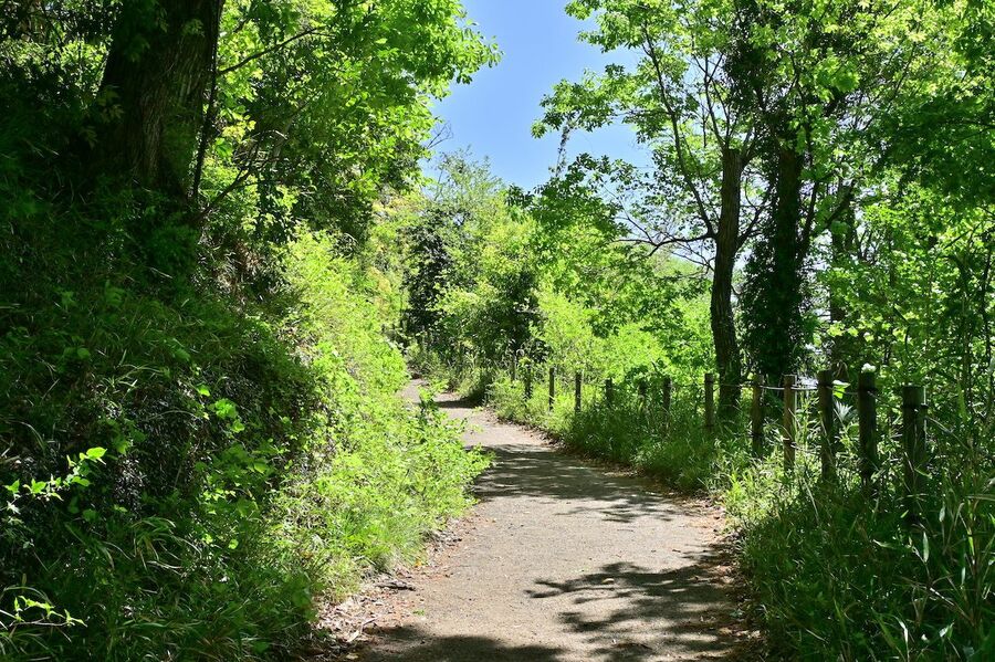 写真3:高幡城への遊歩道。緑の中をゆるゆる登れば、なかなかの山城気分を味わえる