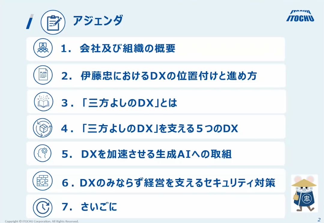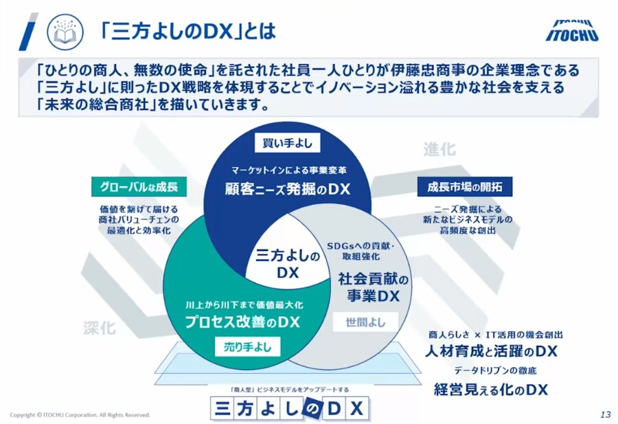 伊藤忠商事のIT・デジタル戦略部長が明かす「三方よしのDX」を実現する5つの柱 (画像1/29) 拡大画像表示 (画像2/29) 拡大画像表示 (画像3/29) 拡大画像表示 (画像4/29) 拡大画像表示 (画像5/29) 拡大画像表示 (画像6/29) 拡大画像表示 (画像7/29) 拡大画像表示 (画像8/29) 拡大画像表示 (画像9/29) 拡大画像表示 (画像10/29) 拡大画像表示 (画像11/29) 拡大画像表示 (画像12/29) 拡大画像表示 (画像13/29) 拡大画像表示 (画像14/29) 拡大画像表示 (画像15/29) 拡大画像表示 (画像16/29) 拡大画像表示 (画像17/29) 拡大画像表示 (画像18/29) 拡大画像表示 (画像19/29) 拡大画像表示 (画像20/29) 拡大画像表示 (画像21/29) 拡大画像表示 (画像22/29) 拡大画像表示 (画像23/29) 拡大画像表示 (画像24/29) 拡大画像表示 (画像25/29) 拡大画像表示 (画像26/29) 拡大画像表示 (画像27/29) 拡大画像表示 (画像28/29) 拡大画像表示 (画像29/29) 伊藤忠商事のIT・デジタル戦略部長が明かす「三方よしのDX」を実現する5つの柱 この写真の記事を読む