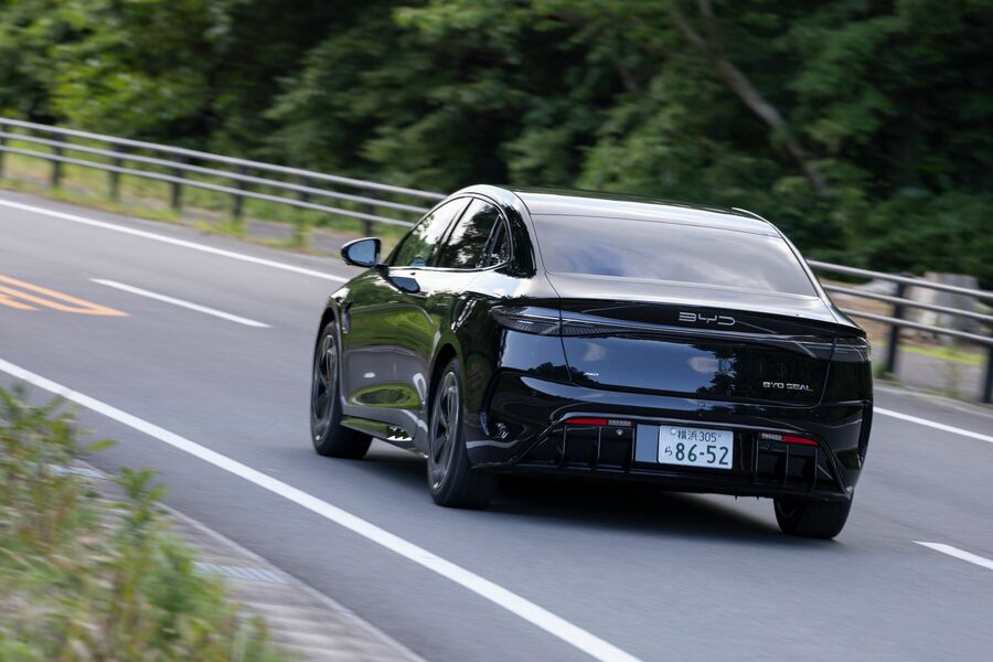 中国BYDの第3の乗用車「SEAL」に試乗 戦略的な価格のDセグメントEVセダン その品質は? (画像1/14) 航続距離は2WDで640km、AWDで575km(いずれも申請時)。バッテリーメーカーとしては実績があり、リン酸鉄リチウムイオンバッテリー(82.56kWh)を搭載する。従来のパック式セルの代わりに薄い板状のセルを使用しているので、“ブレードバッテリー”と呼んでいる (画像2/14) (画像3/14) SEALは“e-Sport Sedan”という位置付けだそうだが、スポーティな印象はそれほど強くない。AWDには機械式の可変ダンパーが標準で装備されている (画像4/14) 画像ギャラリーへ (画像5/14) 画像ギャラリーへ (画像6/14) (画像7/14) プラットフォームはEV専用のe-Platform 3.0を使用。バッテリーを構造部材の一部として使うことを設計の段階から盛り込んでいるという。フロントにも荷室を確保。幼児置き去り検知システム、ペダル踏み間違い時加速抑制装置、自動緊急ブレーキなど最新の安全デバイスも装備 (画像8/14) 荷室容量はフロント50L、リア400Lを確保している (画像9/14) インテリアの動的/静的質感は決して悪くなく、使い勝手にも不満はほとんどない。横だけでなく縦でも使えるセンターディスプレイは、ナビをヘッディングアップで使うユーザーには便利 (画像10/14) 横だけでなく縦でも使えるセンターディスプレイ (画像11/14) (画像12/14) (画像13/14) 後席には大人ふたりが悠々と座れるスペースが確保されている。ボディサイズは全長4800m、1875mm、全高1460mmで、ホイールベースは3m近い2920mm (画像14/14) 中国BYDの第3の乗用車「SEAL」に試乗 戦略的な価格のDセグメントEVセダン その品質は? この写真の記事を読む