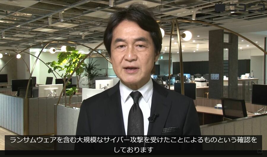 KAWOKAWAグループのシステム障害について謝罪・説明する夏野剛社長。企業のトップ自らがランサムウェア攻撃の被害に遭ったと説明するのは珍しい(YouTubeの「ニコニコ公式チャンネル」より)