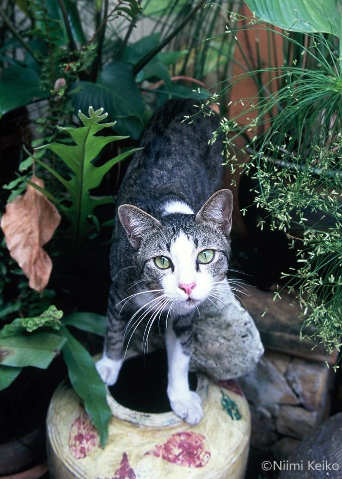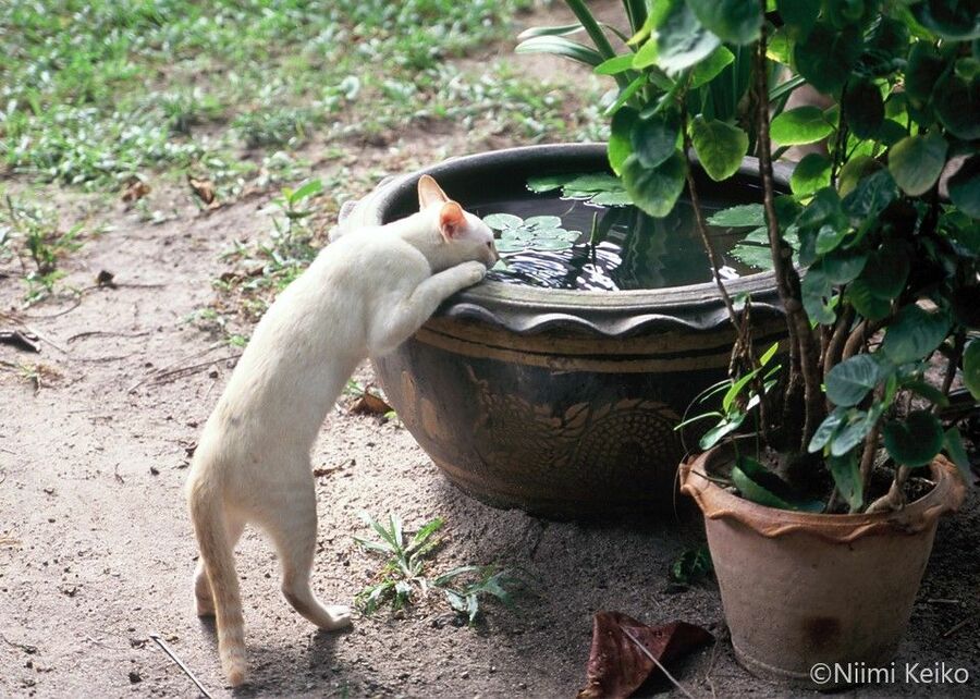 ルクセンブルクの公園に妙な緊張感で向き合う2匹の猫…すると次の瞬間!