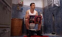 ウクライナ国内でゼレンスキーの人気を不動のものとしたドラマ「国民の僕」のワンシーン。ズボンを下ろしてトイレに座り雑誌を読む主人公(写真:Best Image/アフロ)
