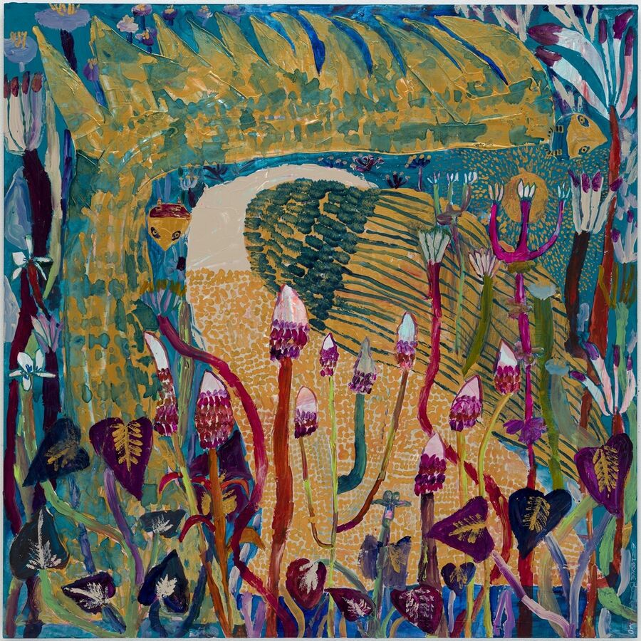ミロコマチコ《光のざわめき》2022年 アクリル・紙コラージュ、木製パネル 作家蔵 Photo: Yuichiro Tamura