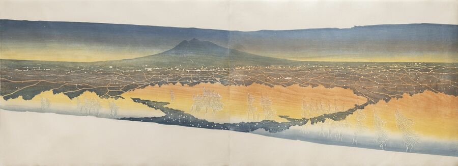 ふるさかはるか《山かけと懺悔》2023年 木版 藍・土、紙 作家蔵 撮影:麥生田兵吾 画像提供:Gallery PARC
