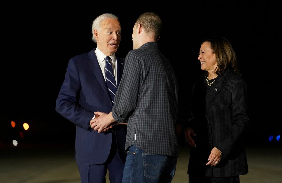 「プーチンの殺し屋」がロシアに帰還、「冷戦後最大」ロシアと米欧の囚人交換で「暗殺部隊」が再び暗躍か 囚人交換で米ウォール・ストリート・ジャーナル紙のジャーナリスト、エバン・ゲルシコビッチ記者(中央)を出迎えるバイデン大統領(左)とハリス副大統領(右)(写真:ロイター/アフロ) (画像1/5) WSJのゲルシコビッチ氏(写真:AP/アフロ) (画像2/5) 囚人交換でロシアに帰国する人たちを出迎えるプーチン大統領(写真:代表撮影/ロイター/アフロ) (画像3/5) 「殺し屋」クラシコフを空港で出迎えるプーチン大統領を皮肉るユリア氏のX投稿(出所:ユリア氏のX投稿より) (画像4/5) 大規模囚人交換について記者会見でスピーチするドイツのショルツ首相(写真:代表撮影/ロイター/アフロ) (画像5/5) 「プーチンの殺し屋」がロシアに帰還、「冷戦後最大」ロシアと米欧の囚人交換で「暗殺部隊」が再び暗躍か この写真の記事を読む