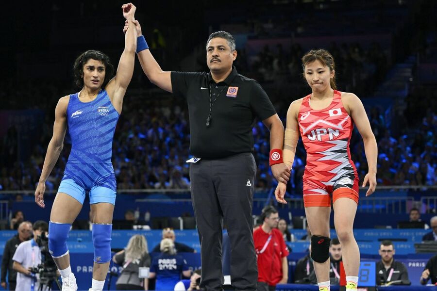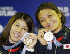 【パリ五輪】まさかの初戦負けに衝撃が走った須崎優衣、「女子レスリングは金メダル量産競技」という“過剰な期待” パリ五輪・女子レスリング50kg級1回戦 初戦でインド選手(左)に敗れた須崎優衣(写真:共同通信社) (画像1/4) 女子50kg級の表彰式で、金メダルを獲得した米国のサラアン・ヒルデブラント(左)を見つめる銅メダルの須崎優衣(写真:共同通信社) (画像2/4) 2014年のレスリング世界選手権で優勝し、笑顔で金メダルを手にする吉田沙保里(左)と伊調馨(写真:共同通信社) (画像3/4) パリ五輪のレスリング女子53kg級で金メダルを獲得し、日の丸を掲げる藤波朱理(写真:共同通信社) (画像4/4) 【パリ五輪】まさかの初戦負けに衝撃が走った須崎優衣、「女子レスリングは金メダル量産競技」という“過剰な期待” この写真の記事を読む