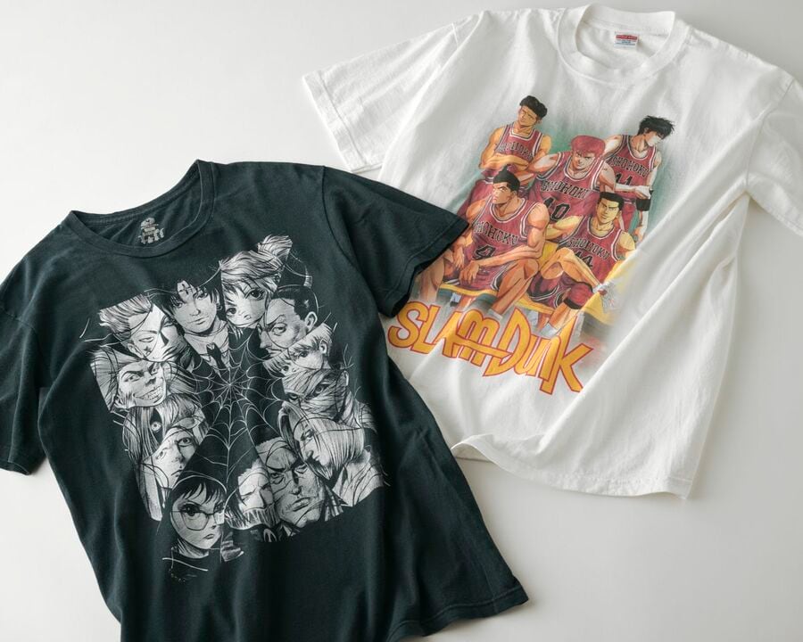 世界的に空前のブーム、高騰の一途をたどる古着の「日本のアニメTシャツ」をおしゃれに着こなすテクニック (画像1/5) 「スラムダンク」のアニメTシャツ(右上)¥33,990・「ハンター×ハンター」のアニメTシャツ¥13,090・「ナルト」のアニメTシャツ¥18,590(すべてディグディグ) (画像2/5) 「犬夜叉」のアニメTシャツ¥21,890(ディグディグ) (画像3/5) 「マッハGoGoGo」のアニメTシャツ¥18,590(ディグディグ) (画像4/5) 「ドラゴンボール」のアニメTシャツ¥18,590(ディグディグ) デニムジャケット¥48,400・ジーンズ¥34,100・ウォレットチェーン¥115,500/ブルーナボイン(ブルーナボイン代官山店) スニーカー¥9,350/コンバース(コンバースインフォメーションセンター) トートバッグ¥27,500/ウティ(にしのや) バングル¥24,750/ノースワークス(HEMT PR) その他/スタイリスト私物 (画像5/5) 世界的に空前のブーム、高騰の一途をたどる古着の「日本のアニメTシャツ」をおしゃれに着こなすテクニック この写真の記事を読む