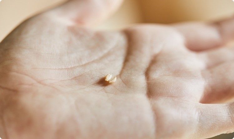 麦粒を半分に切断する(画像提供:株式会社はくばく)