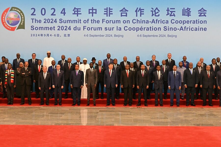 習近平国家主席を囲むアフリカの各国首脳(写真:代表撮影/ロイター/アフロ)