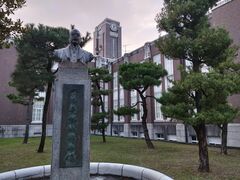 京都大・吉田キャンパスの時計台と新城元総長の像。教育格差を考える一連の授業を終え、京大生たちは何を学んだか