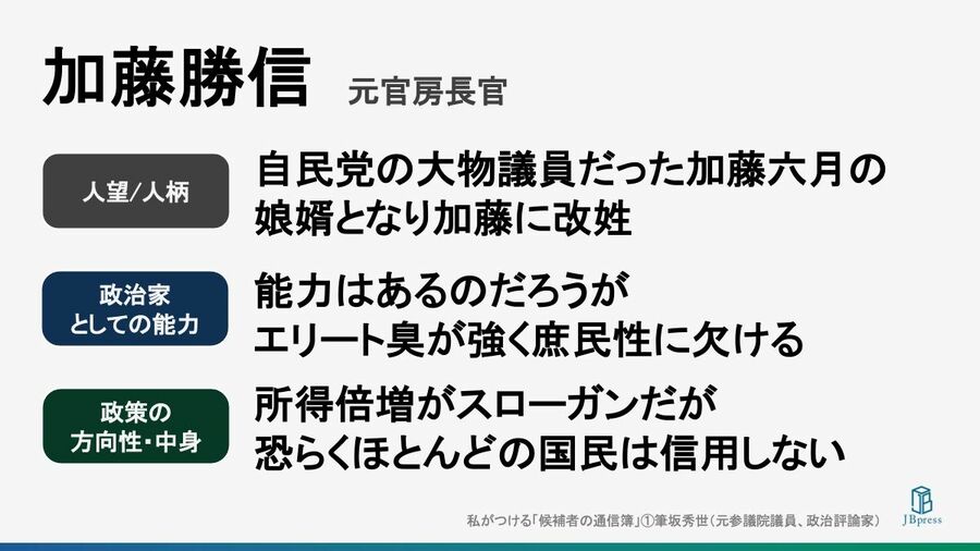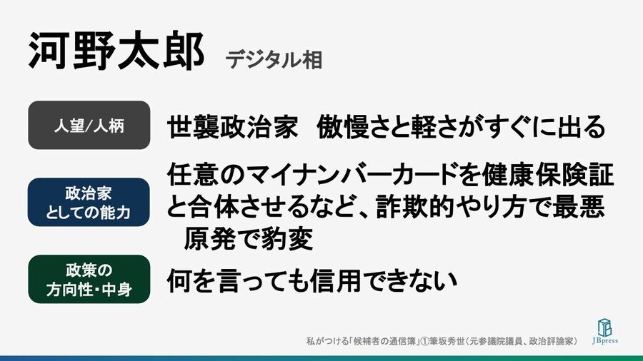 筆坂氏による候補者9人の「通信簿」(敬称略)一覧