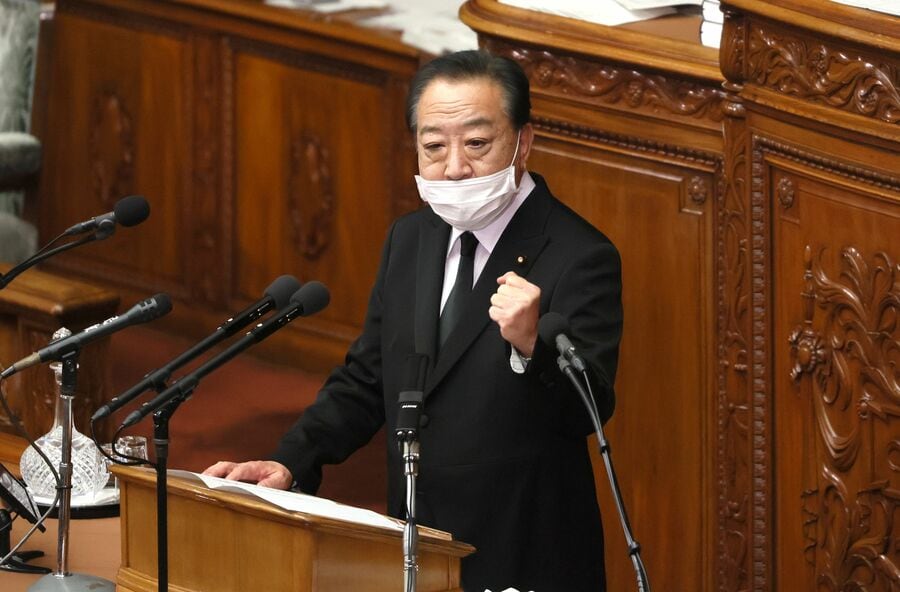 衆議院本会議で、銃撃され死亡した故安倍晋三首相への追悼演説を行う野田佳彦元首相(2022年10月25日、写真:つのだよしお/アフロ)