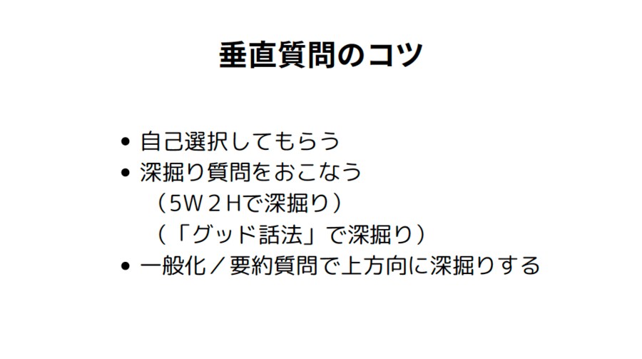 「水平質問」→「垂直質問」で問題の核心に迫る十字カーソル質問法 効果的なヒアリングのために水平質問と垂直質問を組み合わせる(写真:mapo/イメージマート) (画像1/3) (画像2/3) (画像3/3) 「水平質問」→「垂直質問」で問題の核心に迫る十字カーソル質問法 この写真の記事を読む