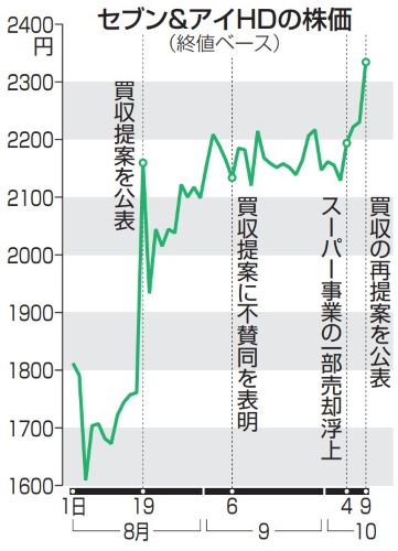 【激震セブン&アイ】予断許さぬ買収提案の行方、祖業スーパーの“大政奉還”と井阪社長を苦しめる米コンビニの難題 コンビニ事業に集中する再編案を発表したセブン&アイ・ホールディングス(写真:共同通信社) (画像1/5) セブン&アイ・ホールディングスの井阪隆一社長(写真:共同通信社) (画像2/5) 祖業のイトーヨーカ堂を切り離す決断をしたセブン&アイ・ホールディングス(写真:共同通信社) (画像3/5) (図表:共同通信社) 拡大画像表示 (画像4/5) セブン&アイ・ホールディングスの株価(グラフ:共同通信社) (画像5/5) 【激震セブン&アイ】予断許さぬ買収提案の行方、祖業スーパーの“大政奉還”と井阪社長を苦しめる米コンビニの難題 この写真の記事を読む