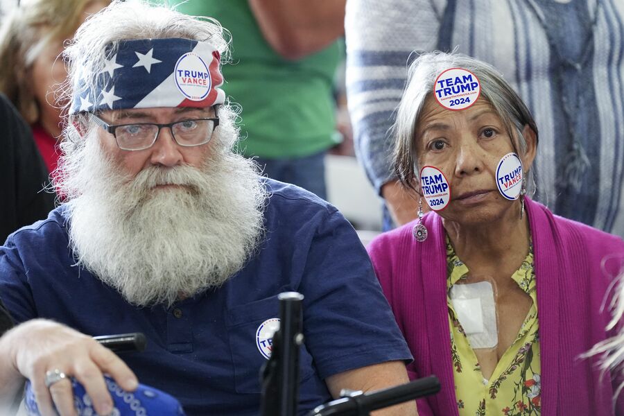 バイデン大統領が「ゴミ」と呼んだ? 11月2日、アリゾナ州スコッツデールでの選挙イベントで、ドナルド・トランプ・ジュニアの演説を聞くトランプ前大統領の支持者たち