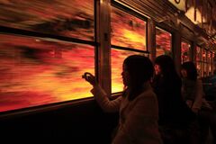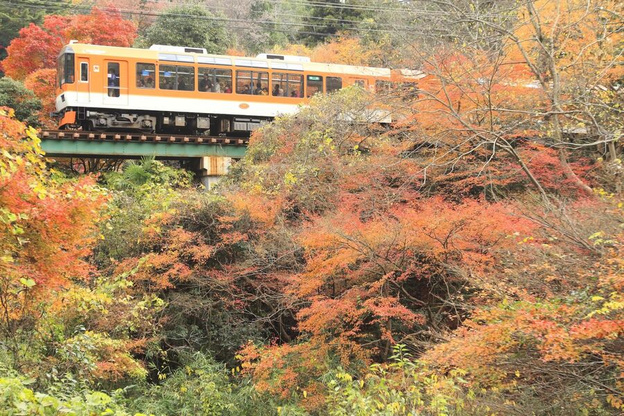 パノラミックな展望が魅力、大きな窓が特徴の展望列車「きらら」で京都の紅葉を車窓から楽しむ 「もみじのトンネル」を抜け出た「きらら」。紅葉をイメージした写真のメープルオレンジと、新緑の青もみじをイメージしたメープルグリーンの2編成が走っている (画像1/4) 「もみじのトンネル」を走る普通列車。窓の額縁に燃えるような彩りが描かれる (画像2/4) 美しい色彩が印象的な二ノ瀬駅 (画像3/4) 叡山本線には楕円がモチーフの観光列車「ひえい」が走っている。こちらも特別料金不要で乗車できる (画像4/4) パノラミックな展望が魅力、大きな窓が特徴の展望列車「きらら」で京都の紅葉を車窓から楽しむ この写真の記事を読む
