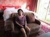 2018年6月、田辺市の自宅リビングで電話する早貴被告。隣は番頭のマコやん。このころは早貴被告が野崎氏殺害に関わったのではと連日、テレビや週刊誌に報じられていたころ(撮影:吉田 隆)*画像は一部加工しています