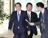 衆院財務金融委で笑顔を見せる安倍首相(前方左)と麻生財務相(同右、いずれも肩書は当時)=2017年02月24日(写真:共同通信社)