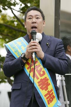 兵庫県知事選が告示され、第一声を上げる立花孝志氏=10月31日午前、神戸市(写真:共同通信社)