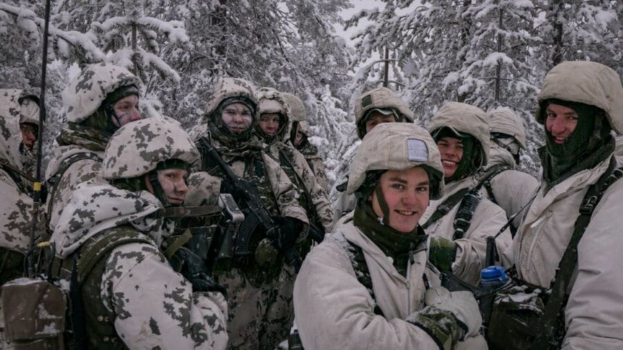 冬期合同演習に臨むスウェーデン軍(右)と、鹿の子まだらの迷彩服をまとったフィンランド軍。中立国時代から事実上の同盟関係にあり、共にNATO加盟を果たした(写真:スウェーデン軍サイトより)