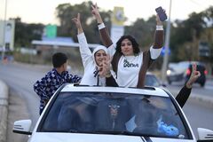 イスラエルとの停戦を喜ぶレバノンの若者たち(写真:AP/アフロ)