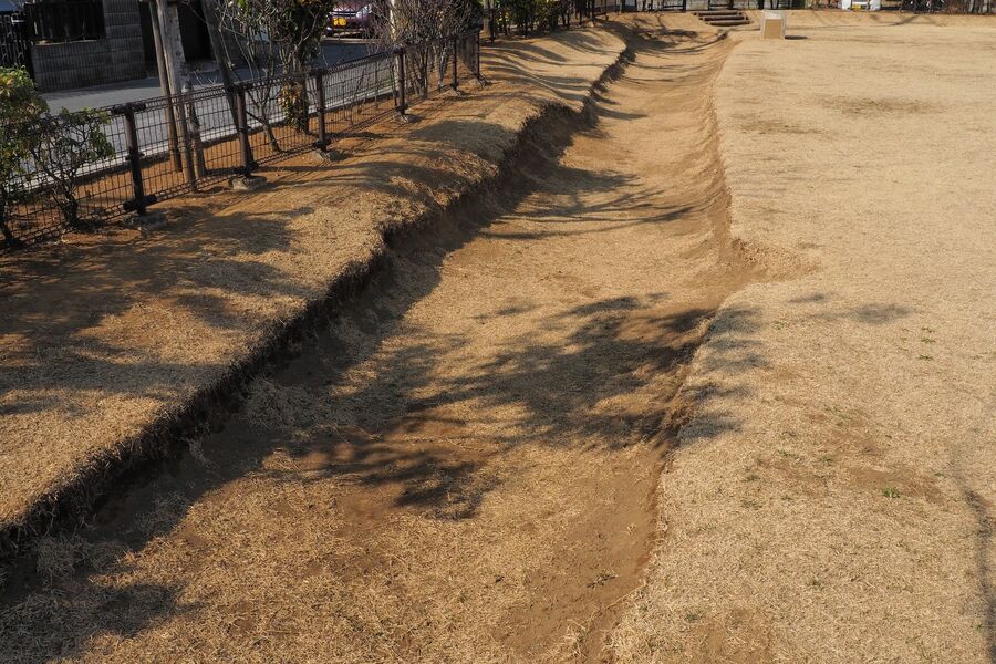 発掘調査で見つかった河越氏時代の溝。堀とは呼べないサイズである