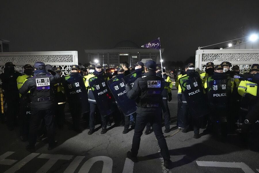 戒厳令宣布後の韓国・国会議事堂前(写真:AP/アフロ)
