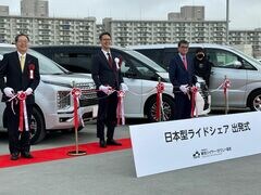 4月に都内で実施された、日本型ライドシェア(自家用車活用事業)出発式の様子。河野太郎 デジタル大臣(当時)と斉藤鉄夫 国土交通大臣(当時)も参加。写真中央が全国ハイヤー・タクシー連合会の川鍋一朗会長(写真:筆者撮影)