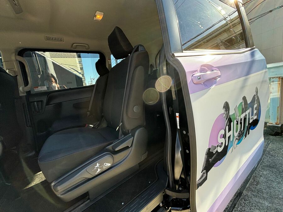 GO SHUTTLEでは、7人乗りミニバンを利用する。スライドドアを開けた状態(写真:筆者撮影)