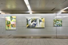 「Window Gallery in Marunouchi―from AATM vol.2」展示風景 左から、山口由葉《半分開けたバスの車窓》、《高速道路の下》、《岩崎御嶽山の木々》2024年
