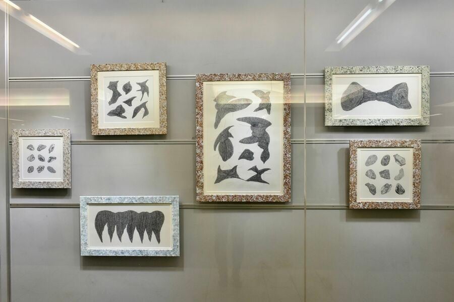 「Window Gallery in Marunouchi―from AATM vol.2」展示風景。野原万里絵《日々の集積(ホーローのための原画)》6点組 2024年