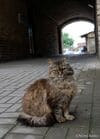 「可愛い猫ちゃんねー」と声をかけると、立派なシッポを高く上げご満悦なリトアニアの猫