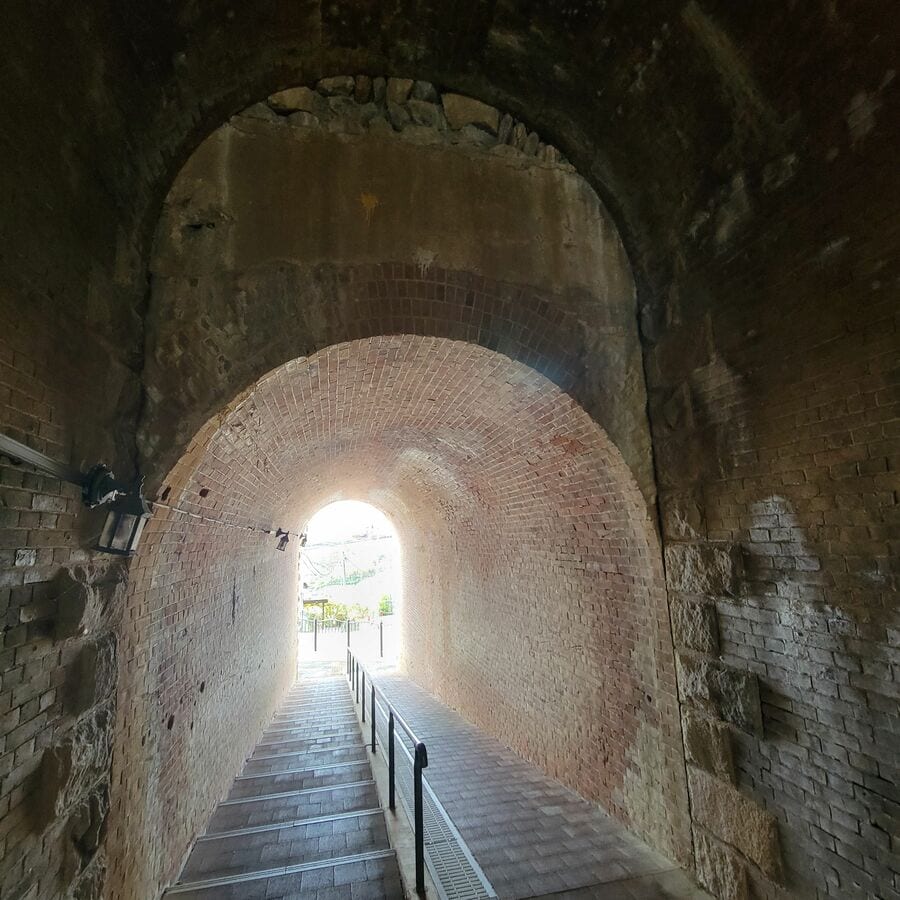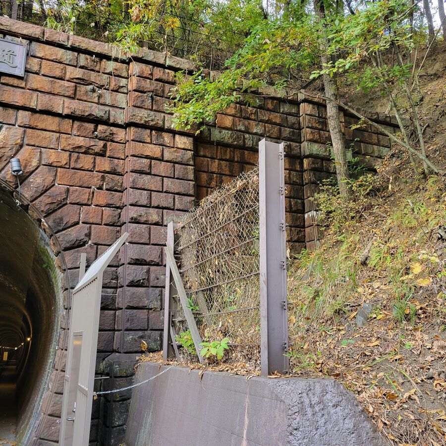 「菱山ガード」は鉄道建設の際に造られた煉瓦構造の道路トンネル