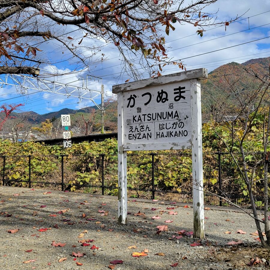 現在の勝沼ぶどう郷駅からスイッチバックの旧ホーム跡を見下ろす。旧ホーム跡は塩山側の一部が残るが、運行当時は長いホームと駅舎が設けられていた