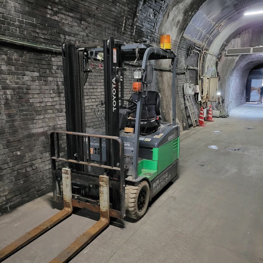 オーナーからのオーダーによるワインの出し入れにはフォークリフトを使用する(特別な許可を得て撮影)