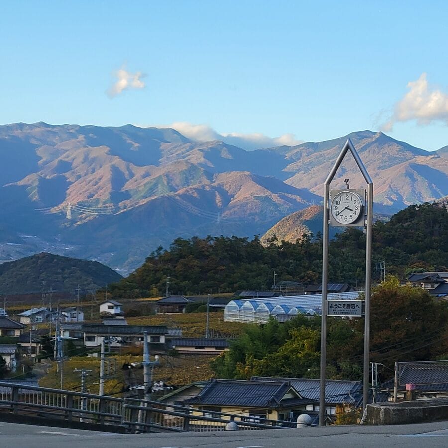 勝沼ぶどう郷駅前からの遠望。晴れた日には2000m級の山々が見渡せる