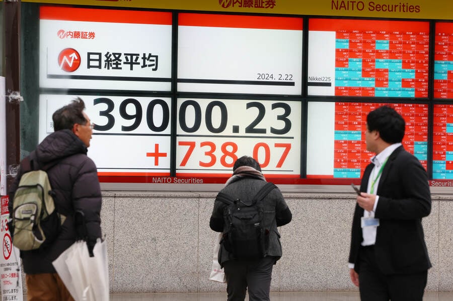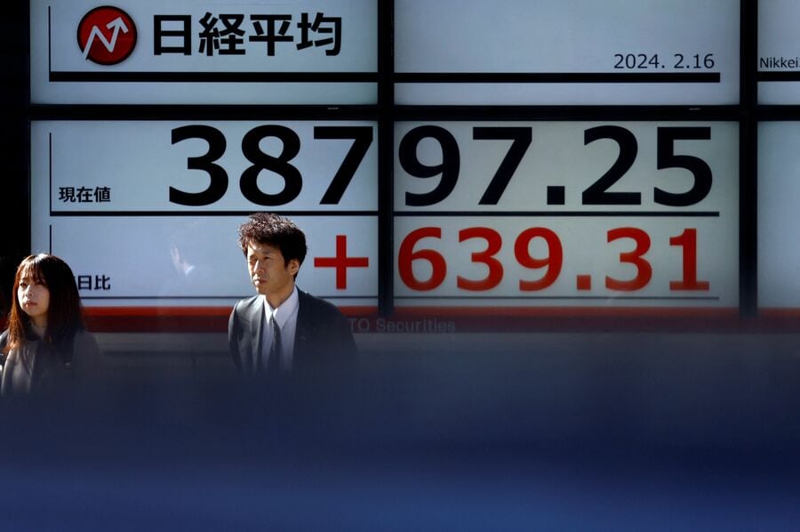 日経平均株価は年初来、急騰してきたが=2024年2月16日撮影(写真:ロイター/アフロ)