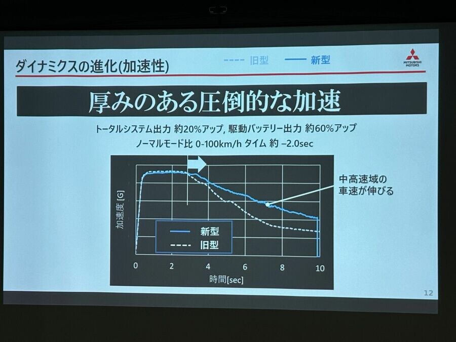 三菱新型「アウトランダー」、実車に乗って驚愕!わずか3年弱で「全く別のクルマ」に、いったい何が変わったのか 三菱新型「アウトランダーPHEV」の報道陣向け試乗会にて(写真:筆者撮影) (画像1/7) 三菱新型「アウトランダーPHEV」を後方から見た様子(写真:筆者撮影) (画像2/7) プラグインハイブリッドのパワーユニット(写真:筆者撮影) (画像3/7) 加速性能が先代モデル比で大幅に向上。投影されたプレゼンテーション(写真:筆者撮影) (画像4/7) 外部給電の機能を使って、電化製品を利用する様子(写真:筆者撮影) (画像5/7) ヤマハのプレミアムオーディオの効果を示す資料。投影されたプレゼンテーション(写真:筆者撮影) 拡大画像表示 (画像6/7) Aピラーに組み込まれたヤマハオーディオシステムの一部(写真:筆者撮影) (画像7/7) 三菱新型「アウトランダー」、実車に乗って驚愕!わずか3年弱で「全く別のクルマ」に、いったい何が変わったのか この写真の記事を読む