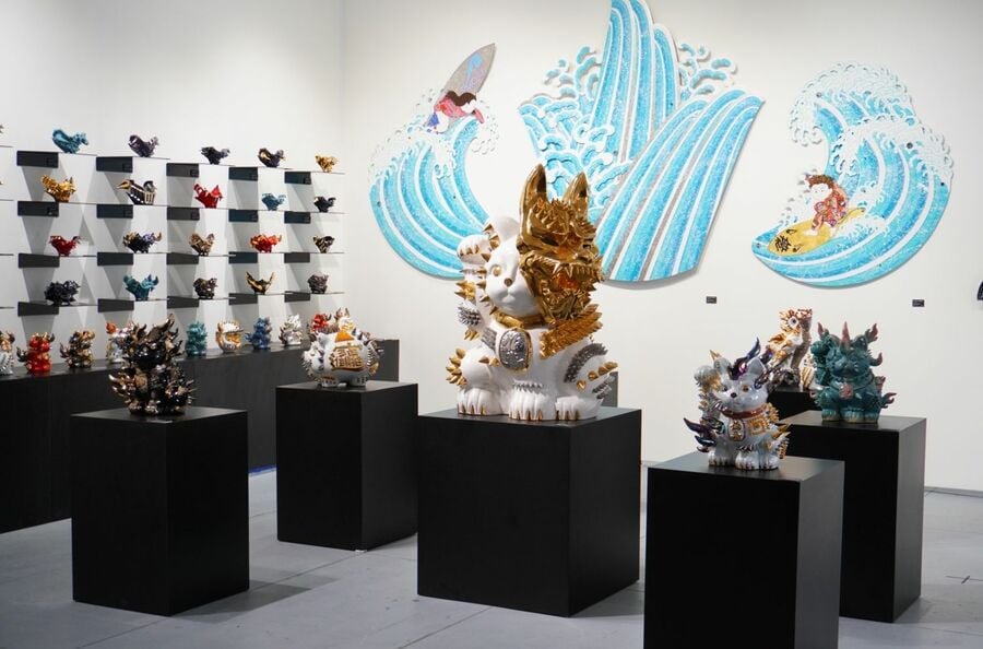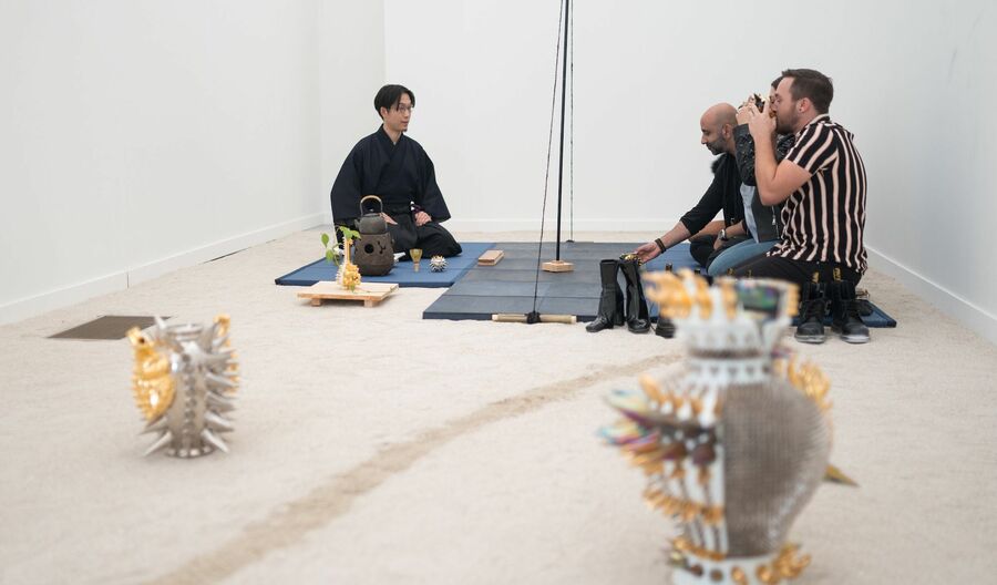 「日本は工芸のプレゼンテーションに失敗し続けてきた」アメリカ最大の現代アートフェアに出展するB-OWNDの戦略 (画像1/14) Art Basel Miami Beach 2024 Courtesy of Art Basel 2024年は38の国と地域から286ギャラリーが参加。この本会場以外に、サテライト会場も開設され、コレクター、ディーラー、評論家などのアート関係者が集まった (画像2/14) 「SCOPE MIAMI BEACH 2024」展示風景。ロクロ成形でつくられた酒井智也の作品 (画像3/14) (画像4/14) 出品作家の一人、古賀崇洋「NEO MANEKINEKO」白磁の猫にスタッズや金彩が豪華 (画像5/14) 茶会を通じて世界に祈りを捧げる作品「"Ichinen” ーThe Life Force at Every Moment」はアートコレクティブ「TeaRoom」(代表・岩本涼)の作品 (画像6/14) 古賀崇洋の派手なスタッズつき茶碗と、戦国武将の「頬鎧」をモチーフにした茶碗を使った2023年の道具組(SCOPE MIAMI BEACH 2023) (画像7/14) 「B-OWND」プロデューサー石上賢さん。1992年生まれ。10代から画家である父の作品販売を手がけ、アートビジネスに関わる。2019年、丹青社の事業としてアート・工芸×ブロックチェーンのプラットフォームB-OWNDを立ち上げる。(撮影・鮫島亜希子) (画像8/14) (画像9/14) 博多人形4代目の中村弘峰は、アスリートなどをかたどった人形を製作する。 球場の軍師 ー孔雀松ー(2023) (画像10/14) B-OWND取扱作家、奈良祐希は、建築家でもあり、陶芸作品はCADで設計。建築と陶芸の融合をコンセプトとしたオブジェを制作 (画像11/14) B-OWND取扱作家、ノグチミエコはガラスの中に宇宙を閉じ込めたような幻想的な作品。吹きガラスの技法が用いられている (画像12/14) 古賀崇洋のスタッズのついた酒盃と片口。工芸は用途ゆえにアートと見られなかったが、欧米では「使えるクール作品」という評価もある (画像13/14) B-OWND gallery (阪急メンズ東京7階)では、B-OWNDが扱う工芸作品を展示する。随時、個展も開催している (画像14/14) 「日本は工芸のプレゼンテーションに失敗し続けてきた」アメリカ最大の現代アートフェアに出展するB-OWNDの戦略 この写真の記事を読む