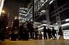 中居正広さんの芸能活動引退を伝える街頭モニター=23日午後、東京都港区(写真:共同通信社)