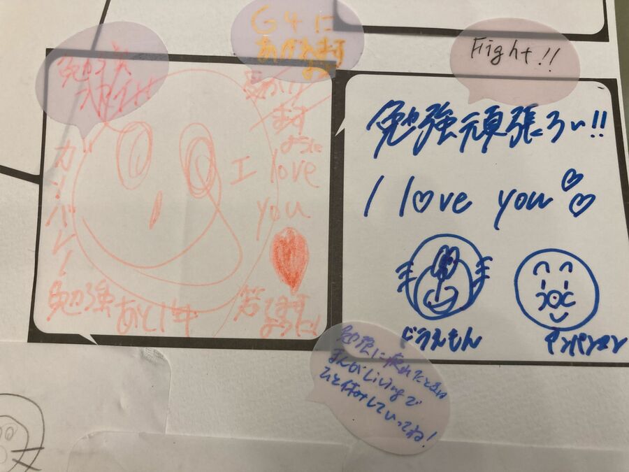 まんがLivingのボードに貼られた付箋=神奈川県大和市のシリウスで