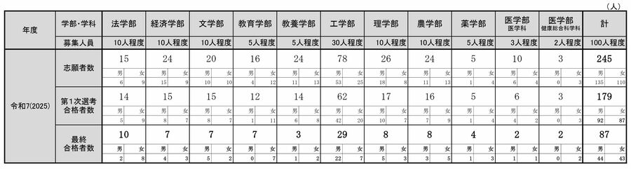 学校推薦型選抜の合格者数(2025年度)