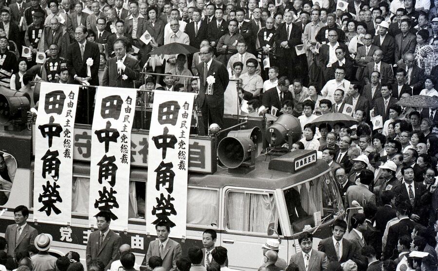 1974年の参議院選挙で田中角栄首相の演説を聞くために集まった大勢の人(写真:Haruyoshi Yamaguchi/アフロ)