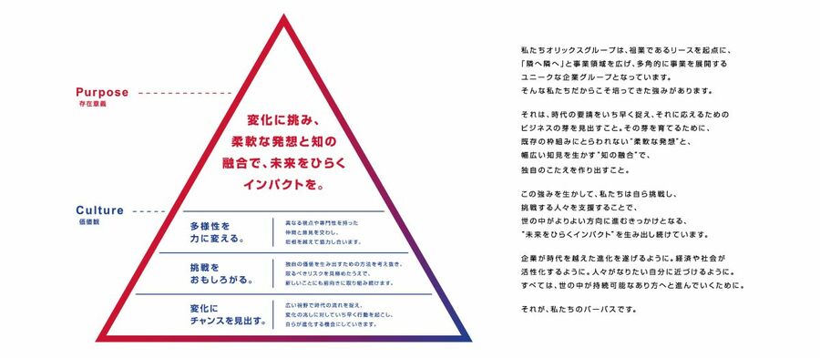 14年ぶりに社長交代したオリックス、髙橋英丈新社長が語る「社員がワクワクするような事業を創造する」ための打ち手 オリックス取締役 兼 代表執行役社長・グループCOOの髙橋英丈氏(撮影:内海裕之) (画像1/12) 資料提供:オリックス 拡大画像表示 (画像2/12) (画像3/12) オリックス生命保険が扱う商品のパンフレット(写真提供:オリックス生命保険) (画像4/12) 資料提供:オリックス 拡大画像表示 (画像5/12) (画像6/12) ORIX Group Purpose & Culture(資料提供:オリックス) 拡大画像表示 (画像7/12) 資料提供:オリックス 拡大画像表示 (画像8/12) スペインで稼働中の太陽光発電所(写真提供:Elawan Enegy S.L.) (画像9/12) リノベーションされた出国審査場(写真提供:関西エアポート) (画像10/12) 国際線出発エリアの免税店(写真提供:関西エアポート) (画像11/12) (画像12/12) 14年ぶりに社長交代したオリックス、髙橋英丈新社長が語る「社員がワクワクするような事業を創造する」ための打ち手 この写真の記事を読む