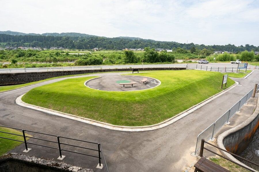 円筒分水横にある芝生の休憩所