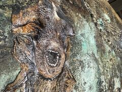 展覧会名のソラリスとは、ラテン語で太陽。前庭の高さ約9mの巨大な彫刻《ラー》はエジプトの太陽神。パレットに大きな翼が生えている