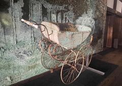 1945年に広島で撮影された写真をヒントにした《オーロラ》には、朽ちた乳母車が取り付けられている