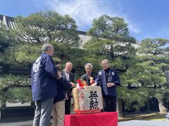 主催は京都市、ギャラリーのファーガス・マカフリー(ニューヨーク、東京)。開会セレモニーには京都市松井市長も鏡割に参加した。右端がゲストキュレーターの南條史生