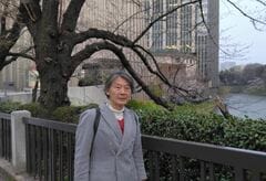 かつて先祖のお屋敷はこのあたりに建っていたという、千代田区の九段会館&昭和館をバックに、正裕さん